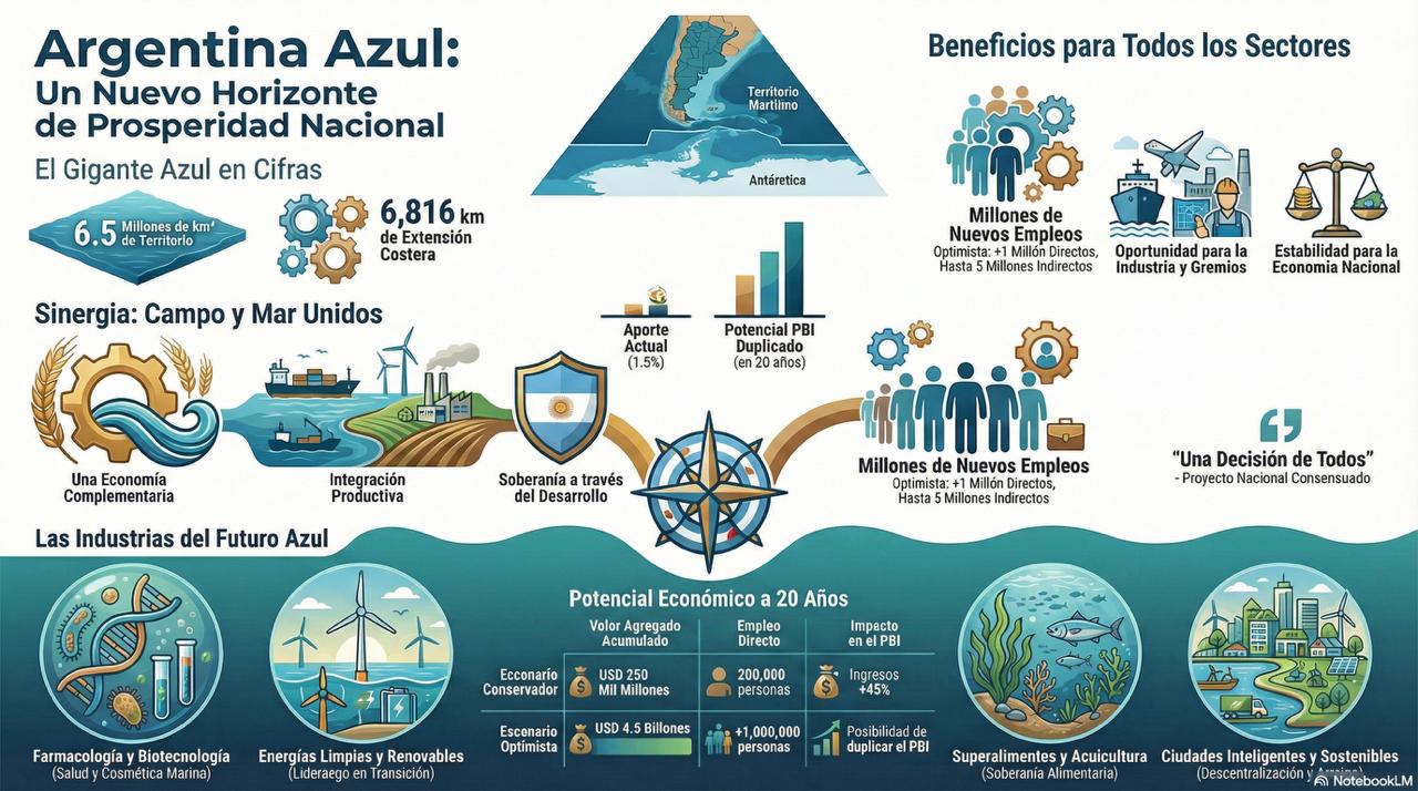 Presentación de una nueva estrategia para la Argentina: el cambio está en el mar. Una nueva Argentina es posible si la construimos desde una visión distinta. Los cuatro ejes de una Argentina Azul para un nuevo proyecto nacional.